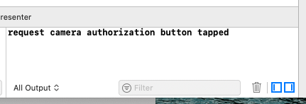 Tapping on Allow button fires a print statement in Console area of Debug area.