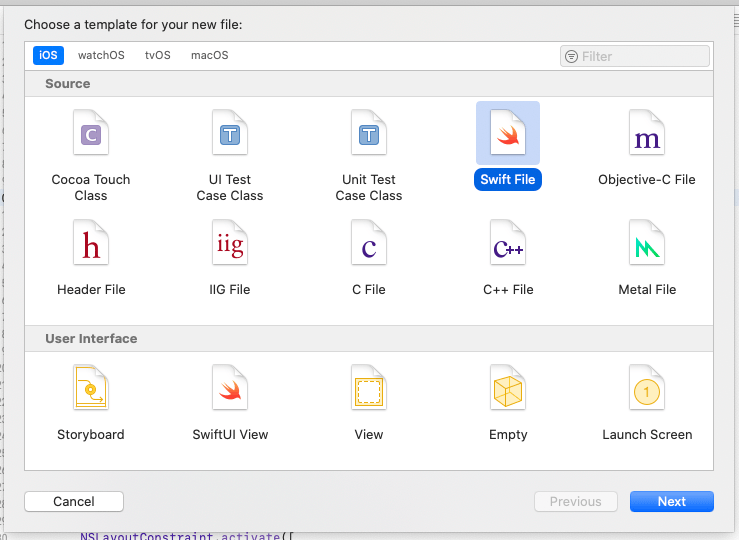Note, we are not creating LaunchViewController inside Main Storyboard, rather a separate Nib. This is because dealing with Storyboards do not play nice with resolving conflicts in source control when working in teams. Hence, I always like to handle things safely and adapt good practices.