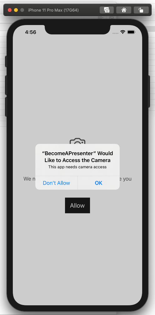 Build and run your app one more time and hit the Allow button and you should see the Permission dialog pop up.